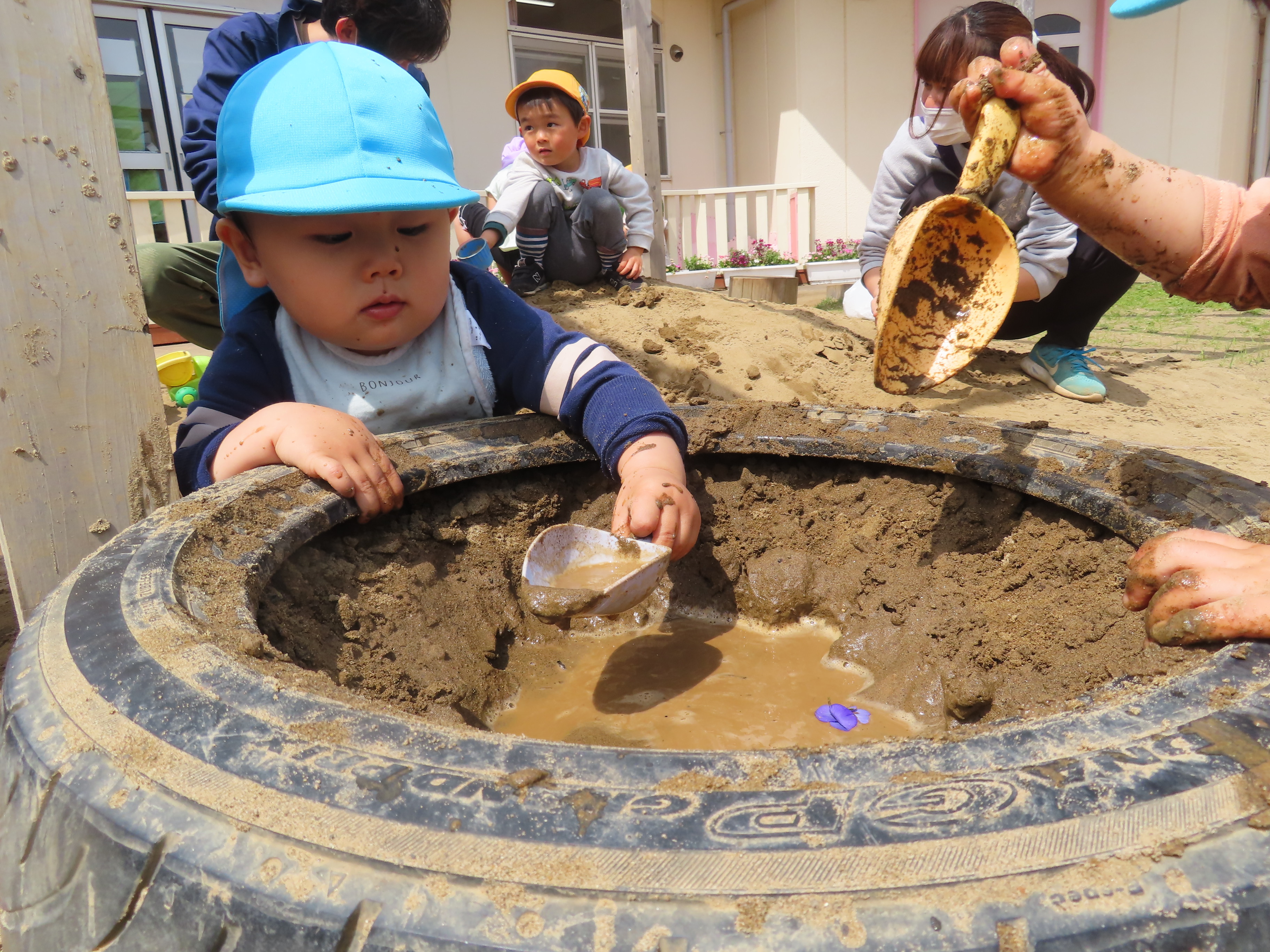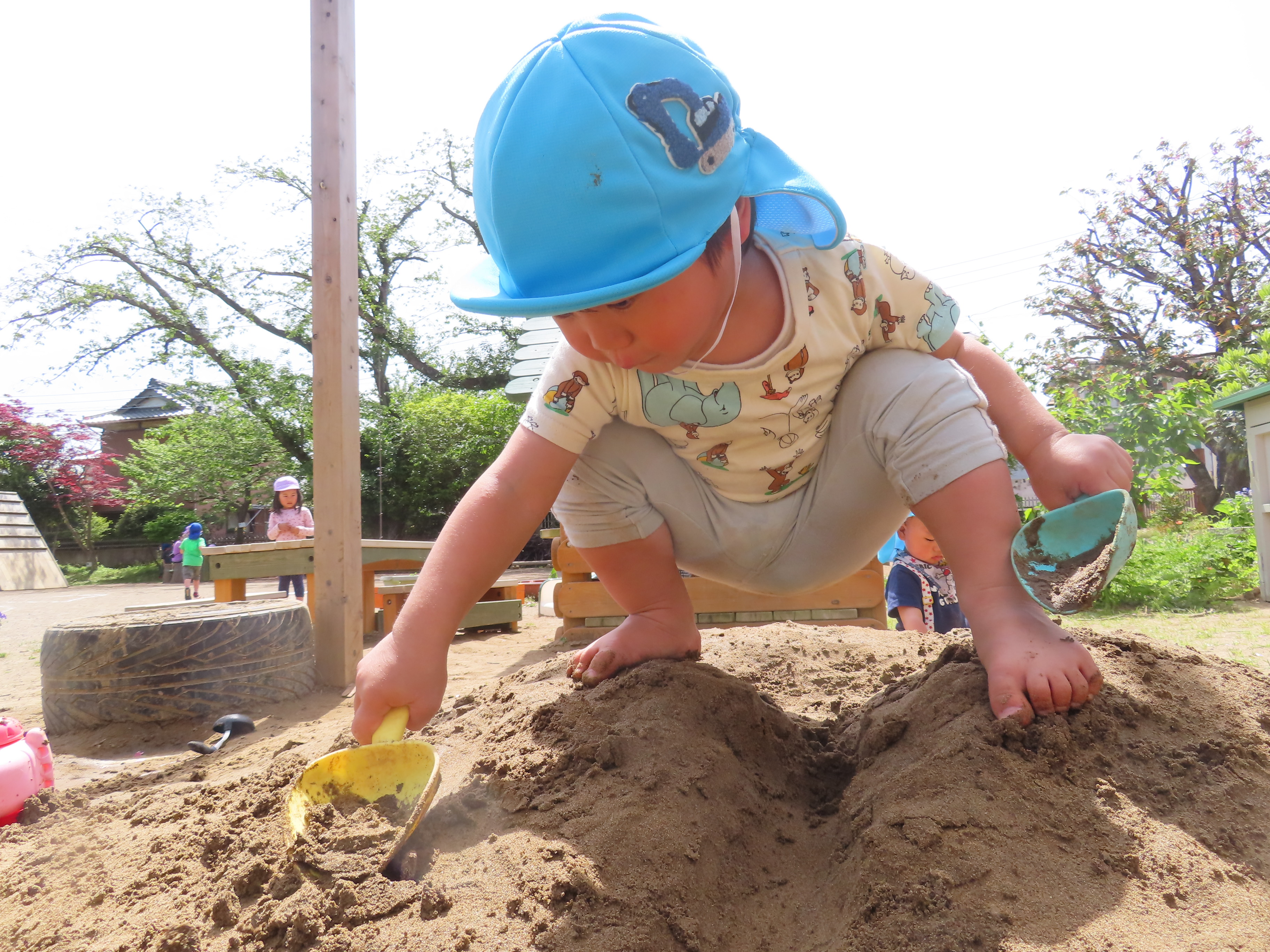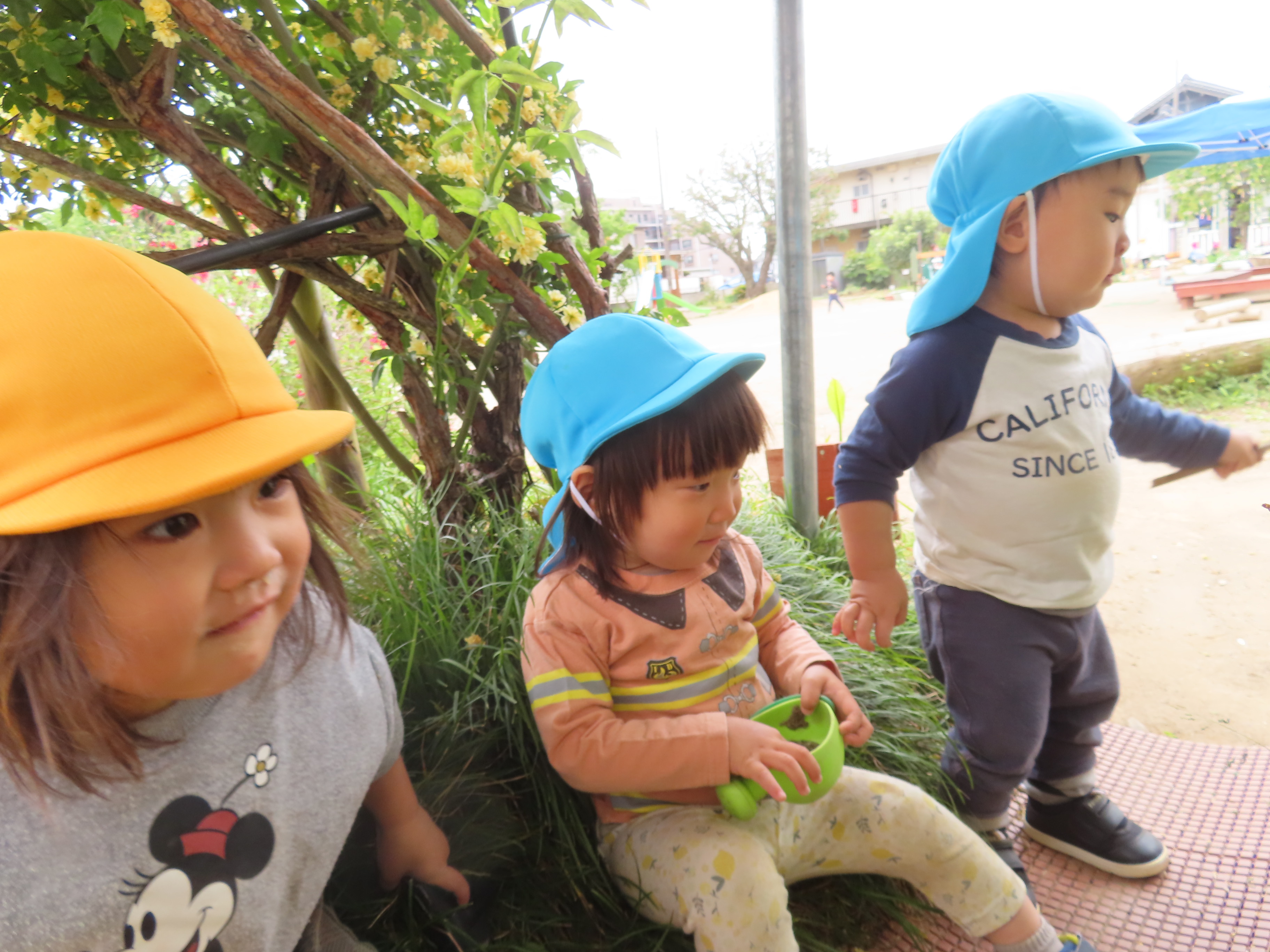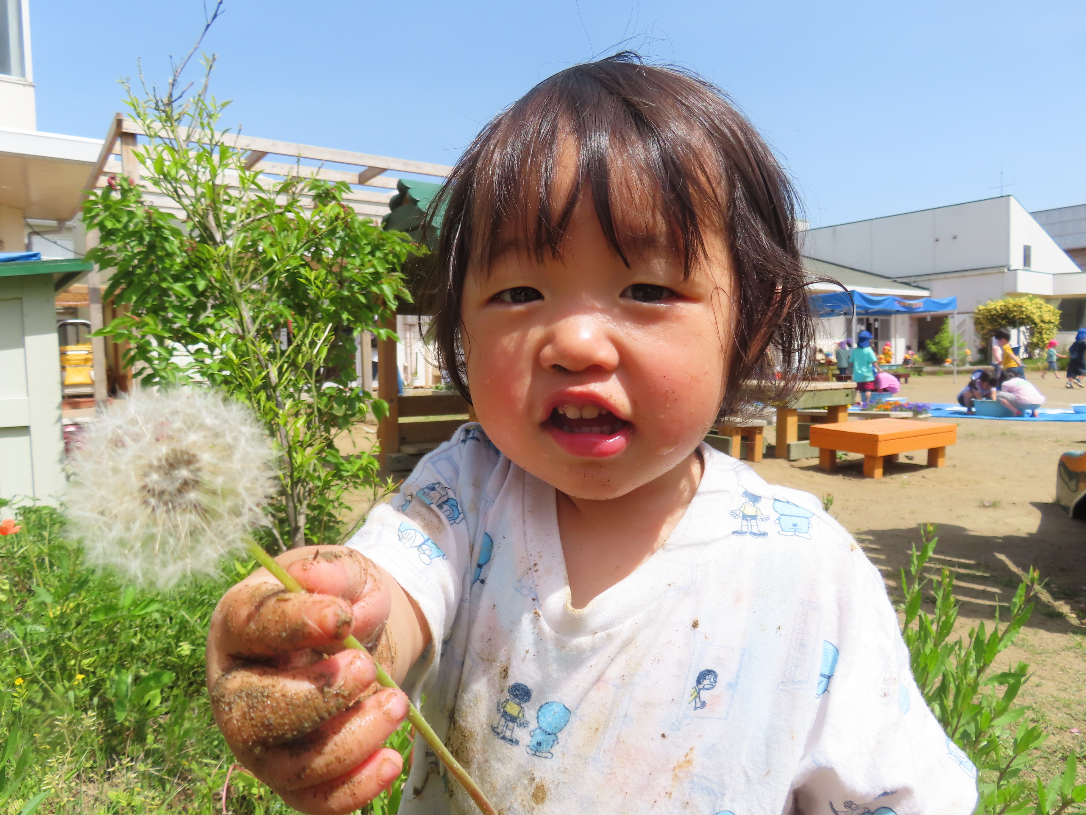 2023年04月28日 (金) 最近では暖かく、天気のいい日が多いですね😊 天気のいい日にはすみれぐみの子どもたちも裸足になってお外へあそびにいっています。 わたげを見つけると嬉しそうに教えてくれ、「ふぅ~」とふいてみている姿も♪ 日陰、気持ちいいね🌸 byすみれぐみ担任