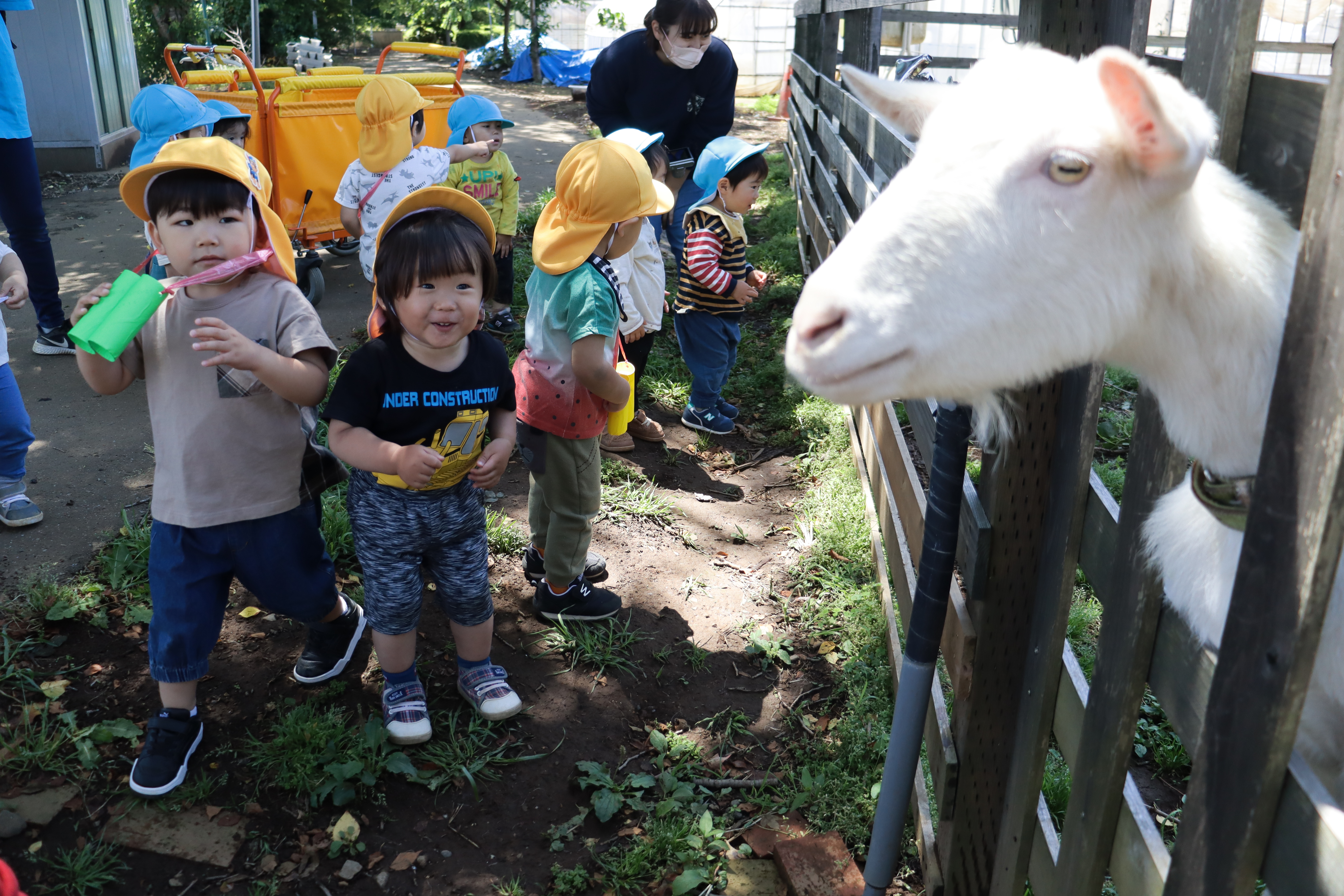 貴重な体験ができ、子ども達も園に帰ってから「やぎさんメ~メ~いたね」と嬉しそうな姿も見られました。