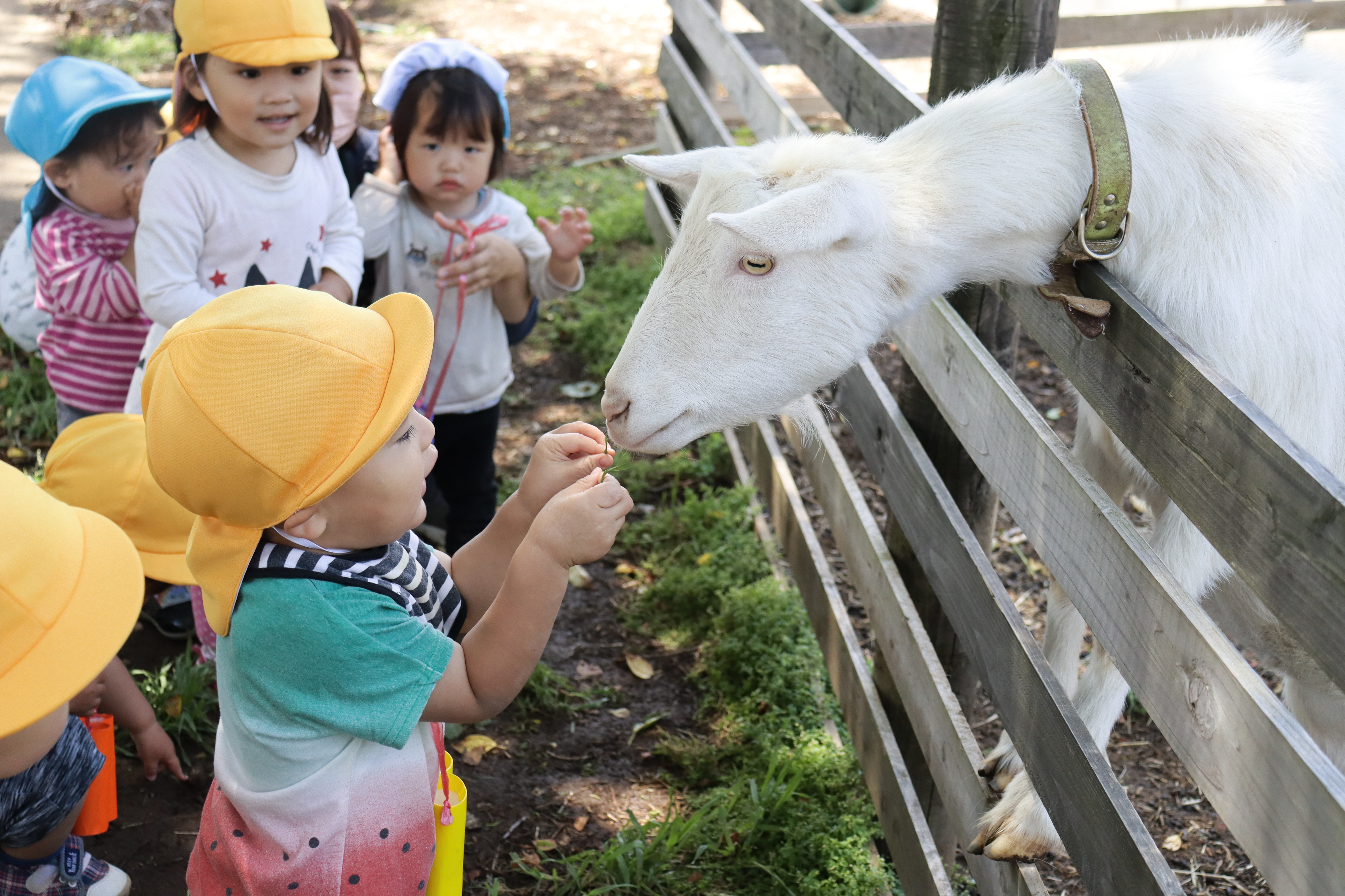 最初はやぎに怖がりながら少し遠くで見ていた子ども達。
