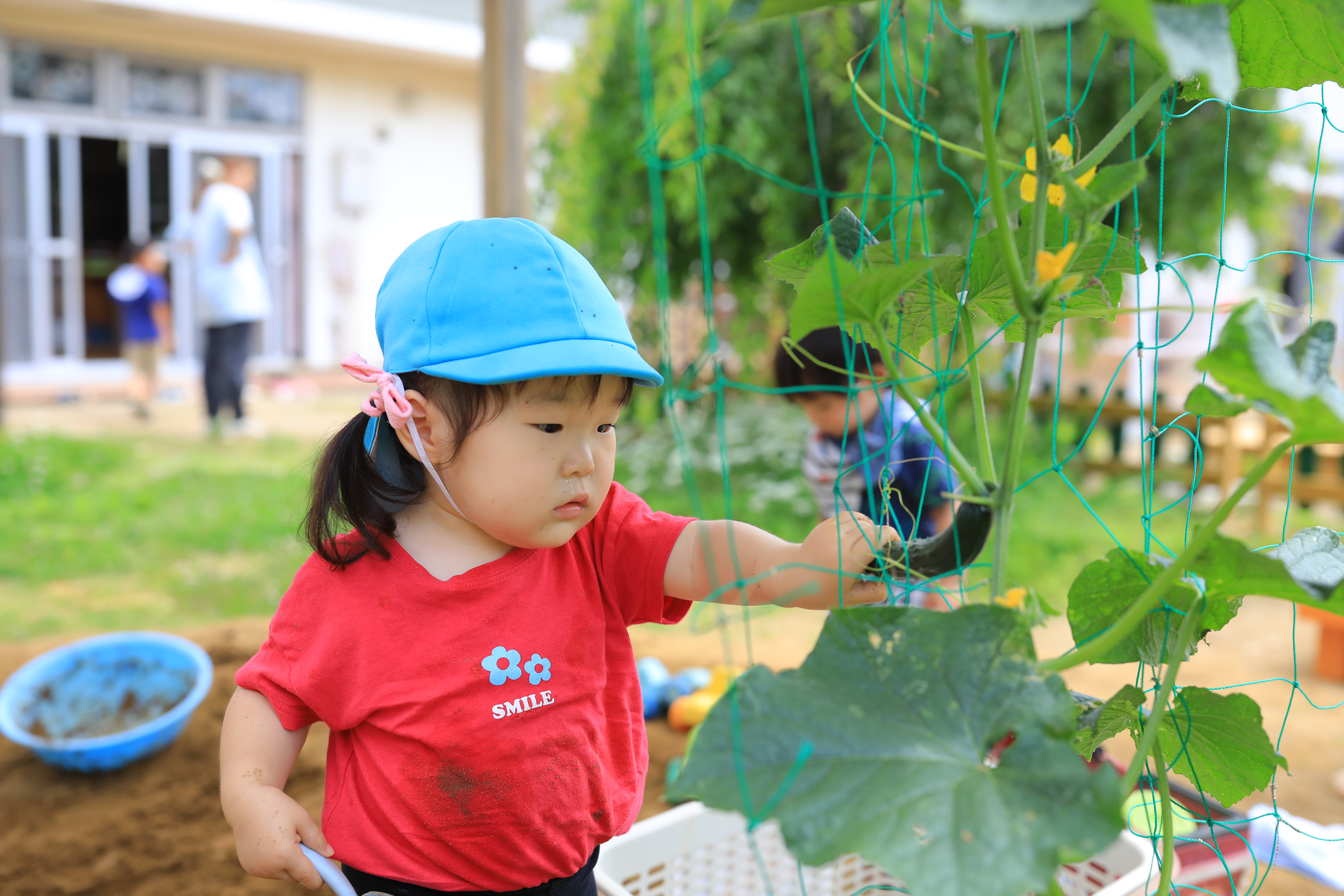 2024年06月12日 (水) 今週は天気も良く、戸外でのびのびと遊ぶ子どもたち。それぞれの年齢なりに自分の好きな遊びに夢中となったり、クラスで栽培している夏野菜の収穫に喜んだりといろいろな経験をしていました。明日からもどんな遊びが見られるかとても楽しみです!