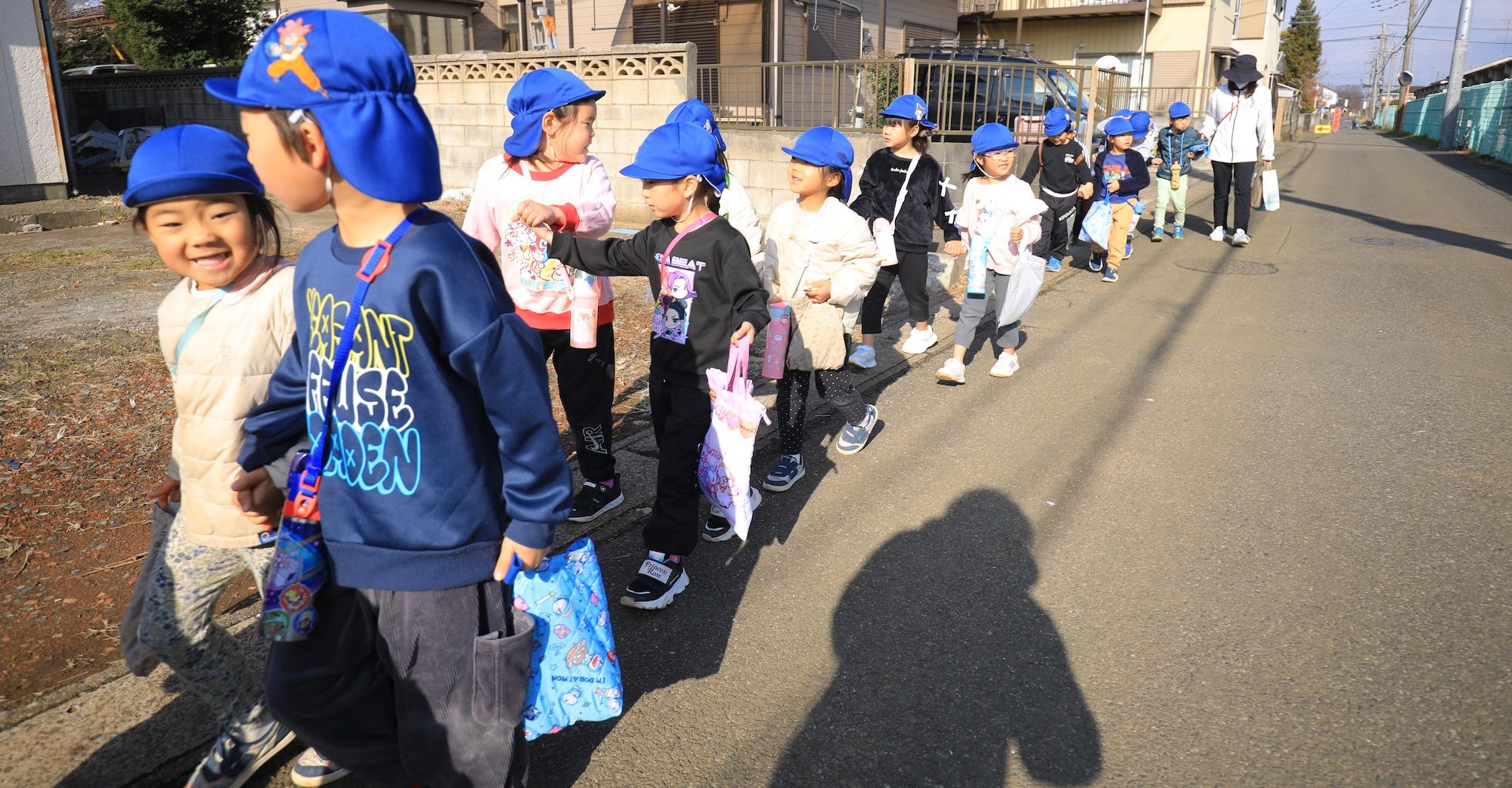 小学校へ向かう道中には小学生のお兄さん・お姉さんと一緒に過ごせることにワクワクしたり、学校探検にドキドキしたりする子どもたちの様子が見られました。