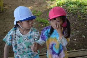 一方で、ナメクジをみつけたゆり組さんとさくら組さん。