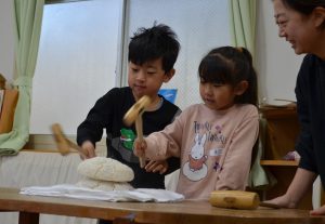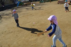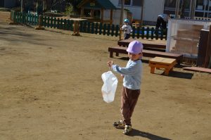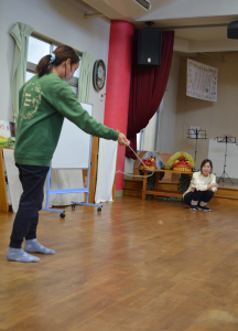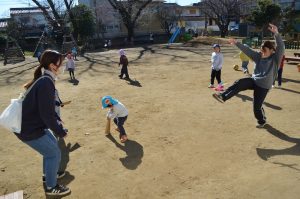 戸外では、集いで紹介した正月遊びで盛り上がりました。