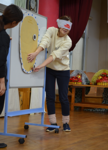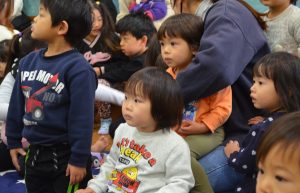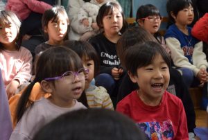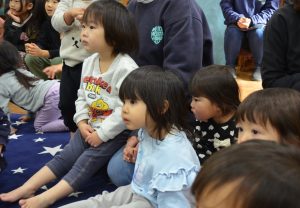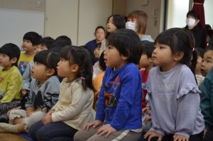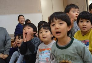 福笑いなどを職員が紹介し、子どもたちも興味津々で見ていました。