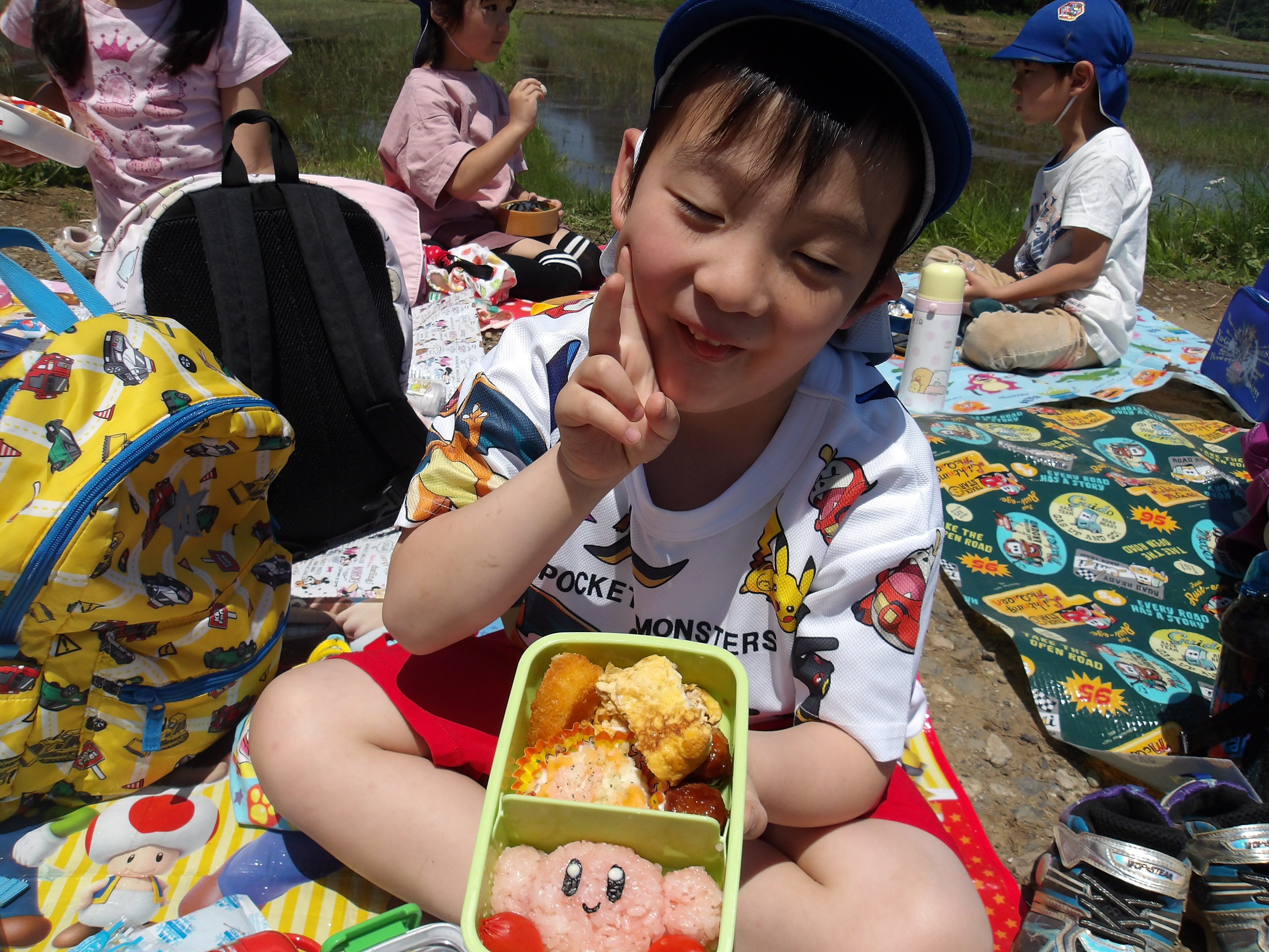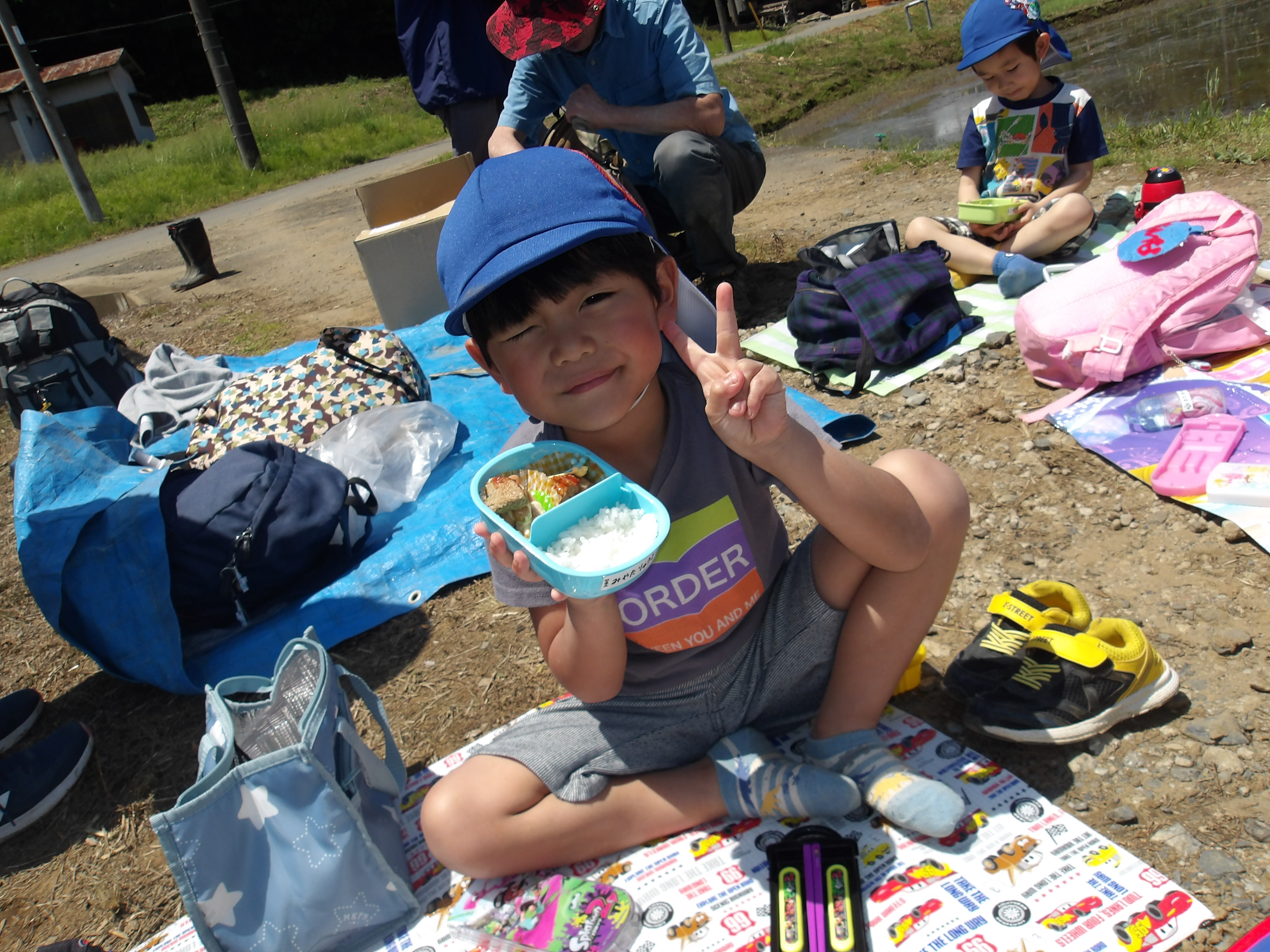 沢山田植えをした後は、朝から楽しみにしていた『お弁当』!!
