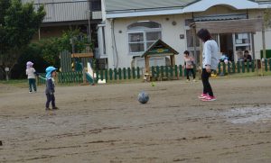 身体を動かすのにちょうど良い気候になったこともあって、リレーを楽しんだり、異年齢でかかわりあって遊ぶ様子が見られています。