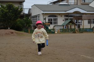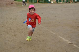 3歳児さんも、バトンを持って走ることを喜んでいました。