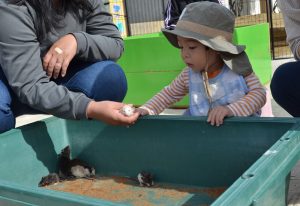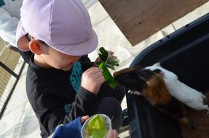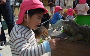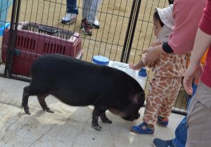 ひよこ・ウサギ・モルモット・ファンシーラットなどの小さな動物だけでなく、ブタ・やぎ・イグアナ、そして、なかなかふれあう機会のないヤマアラシやマーラといった動物も連れてきてくださり、子どもたちは、柵の準備をしている段階から大興奮!