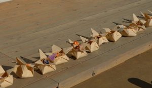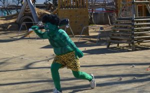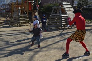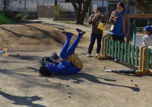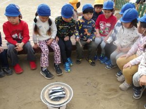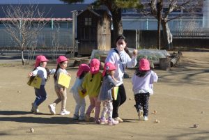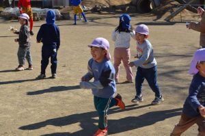 会が終わった後は、鬼が来たら困るから・・・と、テラスに鬼退治用の豆を置いて外遊びへ行きました。