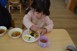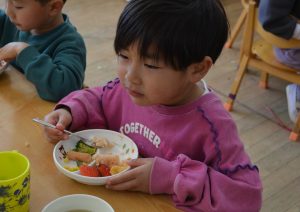 自分たちで作った鬼をよく噛んで食べ、こちらの鬼もしっかりとやっつけました!