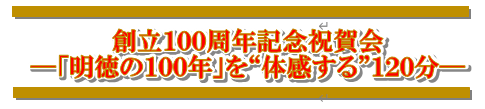 100年の節目に、明徳は“未来への挑戦”で応えました。創立者の理念と、1000年先の物語が同じ舞台で息づいた——それが今回の祝賀会です。