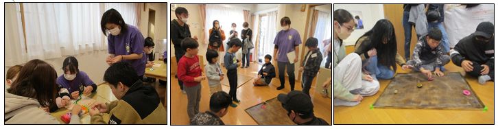 例年同様、たくさんの卒園児や保護者の方々が参加してくれ、園内ではストラックアウトやコマ回しなどのゲームコーナー、割り箸鉄砲やミサンガ、スライムづくりの製作コーナーなどの催し物を行い、大盛り上がりでした。
