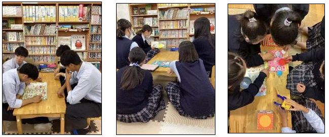 「調べる」段階では、文献やインターネット検索に加え、短期大学の図書館や子育て支援施設を訪問し、玩具や関連書籍に触れる体験をしました。