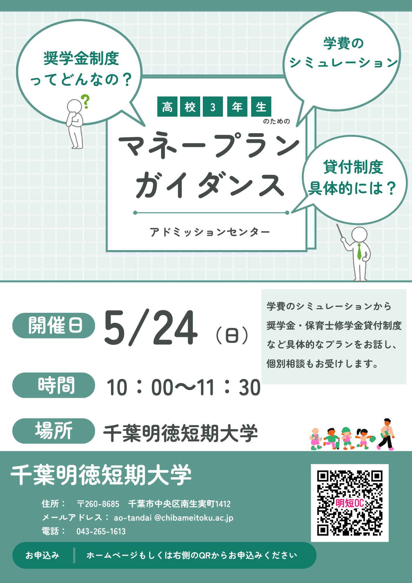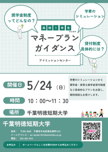 内容:学費や奨学金の説明&シミュレーション&個別相談(奨学金担当職員が参加)
