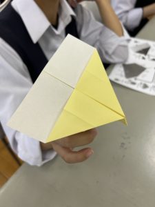 ☆みんなで折り紙で紙ひこうきを作って飛ばしてみました。